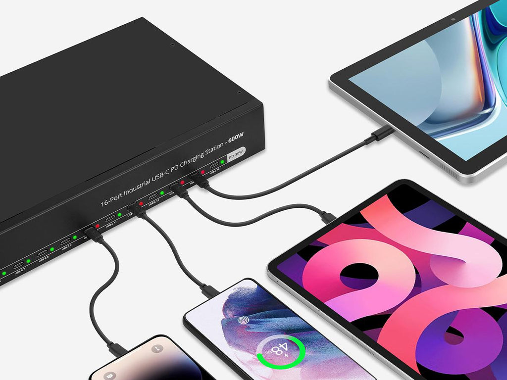 1x AC Power Jack 1x Power Switch 16x USB Type-C, Female, USB device connection