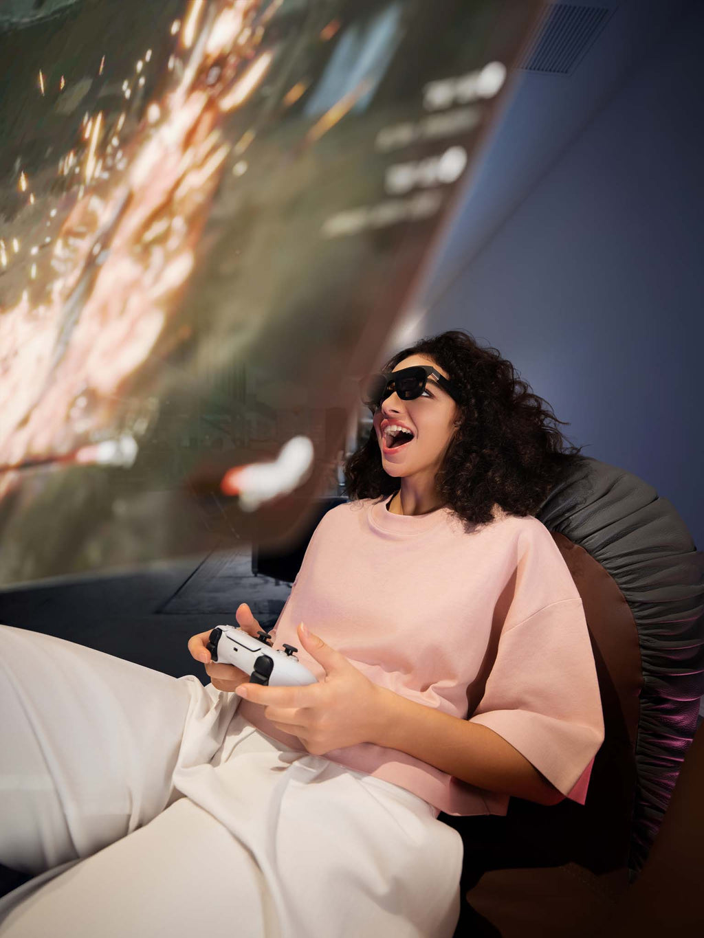 - Movies & shows – watch on a 171-inch equivalent screen from your couch, flight, or anywhere
