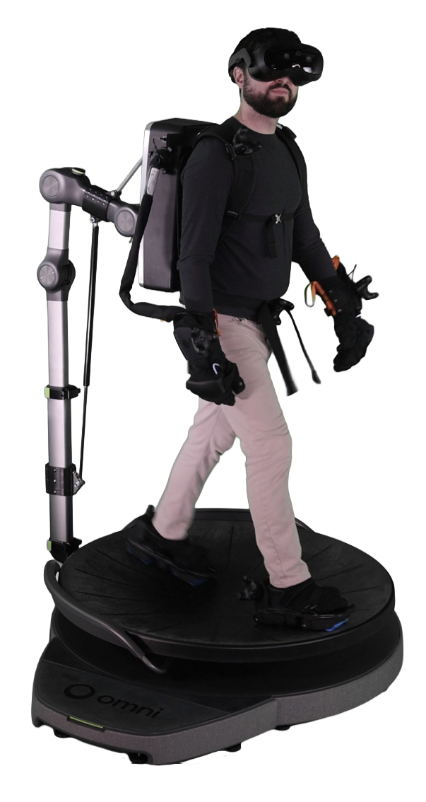 The Omni One platform enables continuous locomotion and a wide range of motion, while keeping operators safely contained. An added counterbalance system makes the HaptX Airpack effectively weightless.